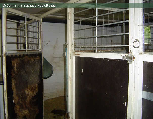 Tässä on tallimme sisältä katsottuna ja sivuilla näkyy karsinat.